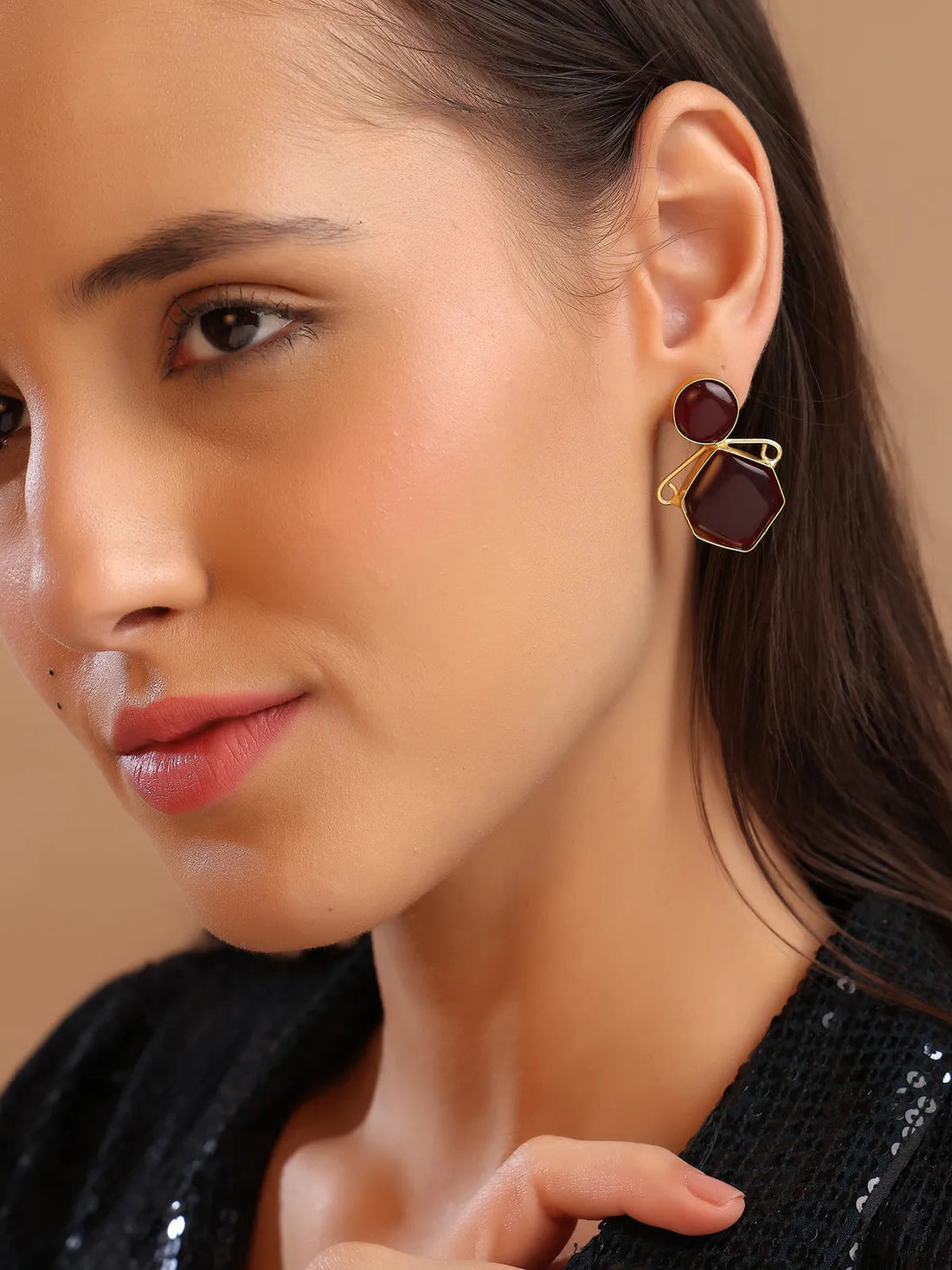 Geometric Stud Earrings with Gold Outline | Bold Daily Wear