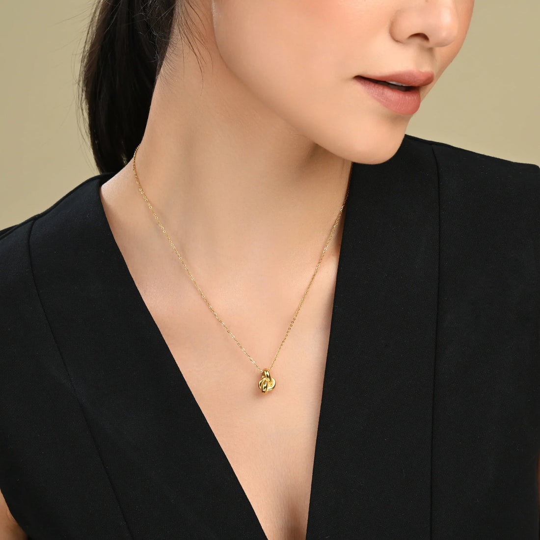 About this item This stunning Gold plated necklace features a modern, intertwined knot pendant that...
