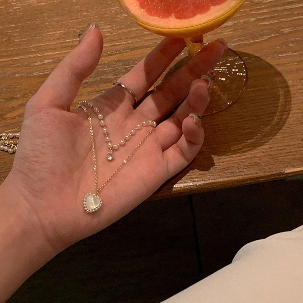 - Layered necklace: pearl heart necklace, classic and versatile, layered design and fashion trend, very popular with women